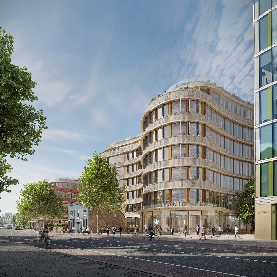 Design changes have been submitted for Botanic Place, a new office scheme with planning permission being developed by Railpen and Socius, which will see the delivery of the most sustainable and intelligent workspace in the UK, outside of London.