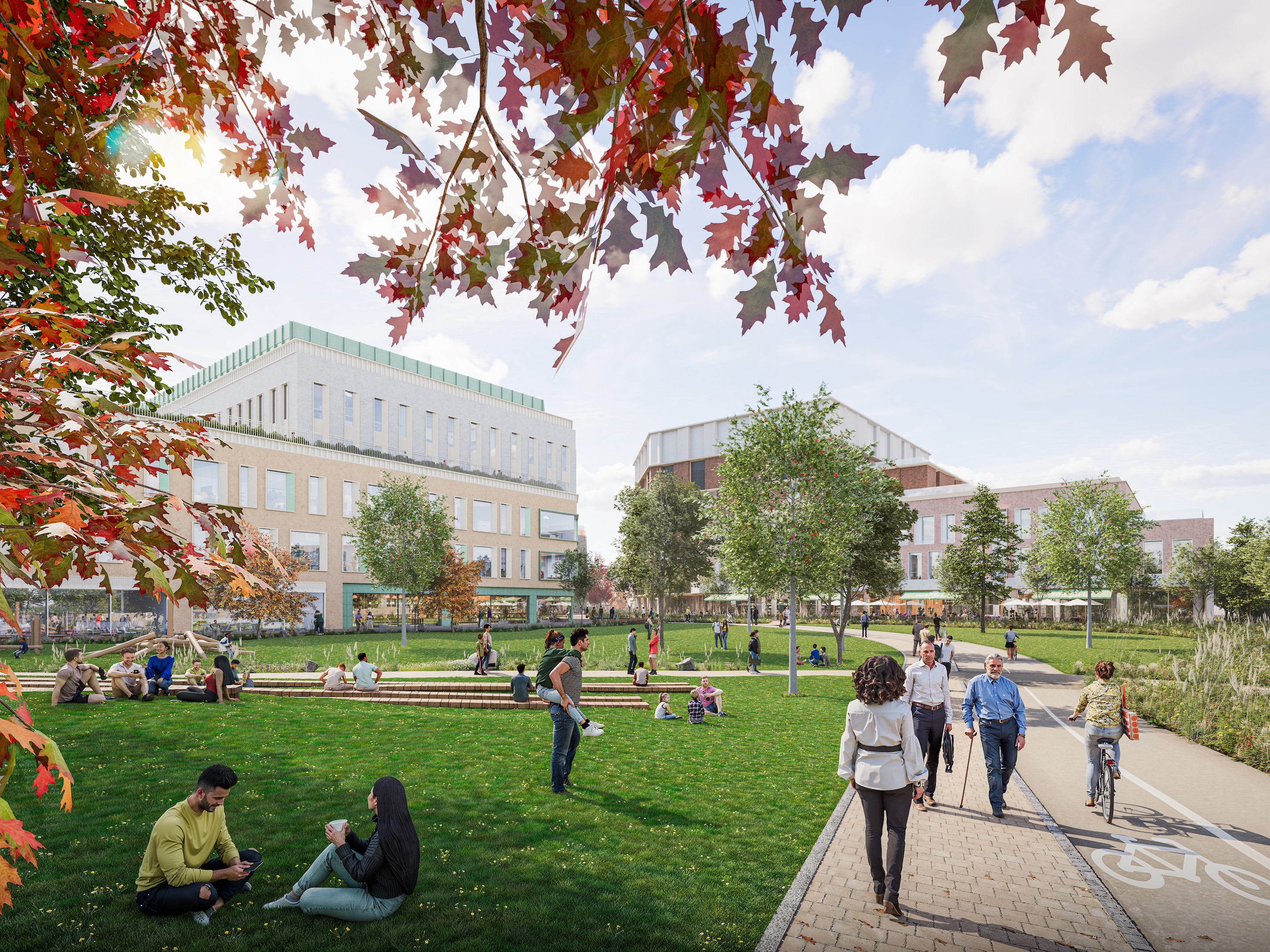 Currently a retail park, Railpen’s plans will transform Beehive into a world-class innovation park including workspaces for technology businesses, laboratories for research, a substantial new community park, a youth and community hub, science centre, and around 20 new shops, restaurants and cafés. Major public transport upgrades are a central part of the plans, and will remove more than 10,000 cars from local roads.